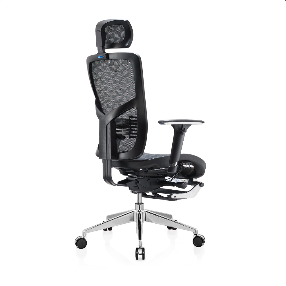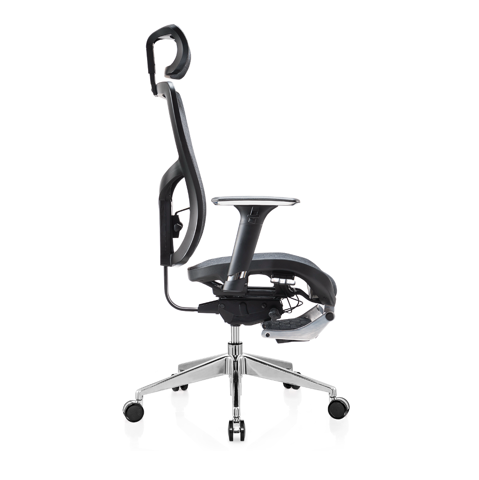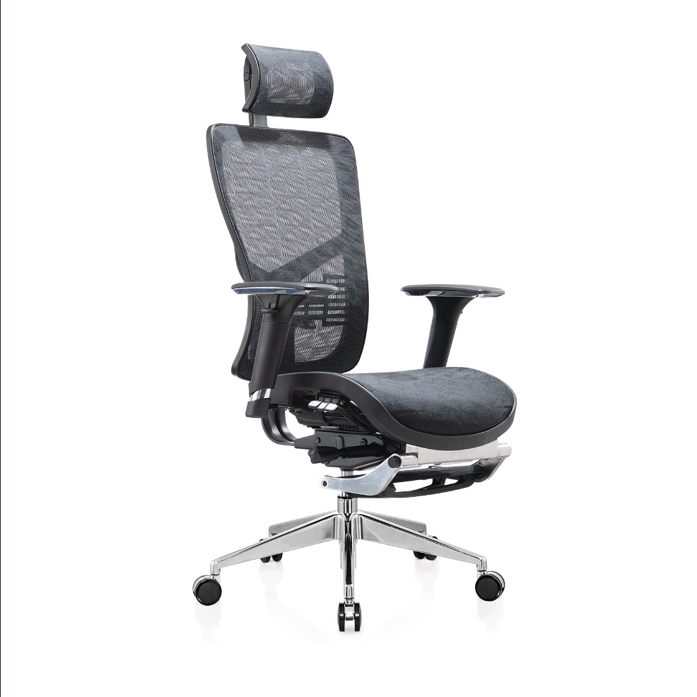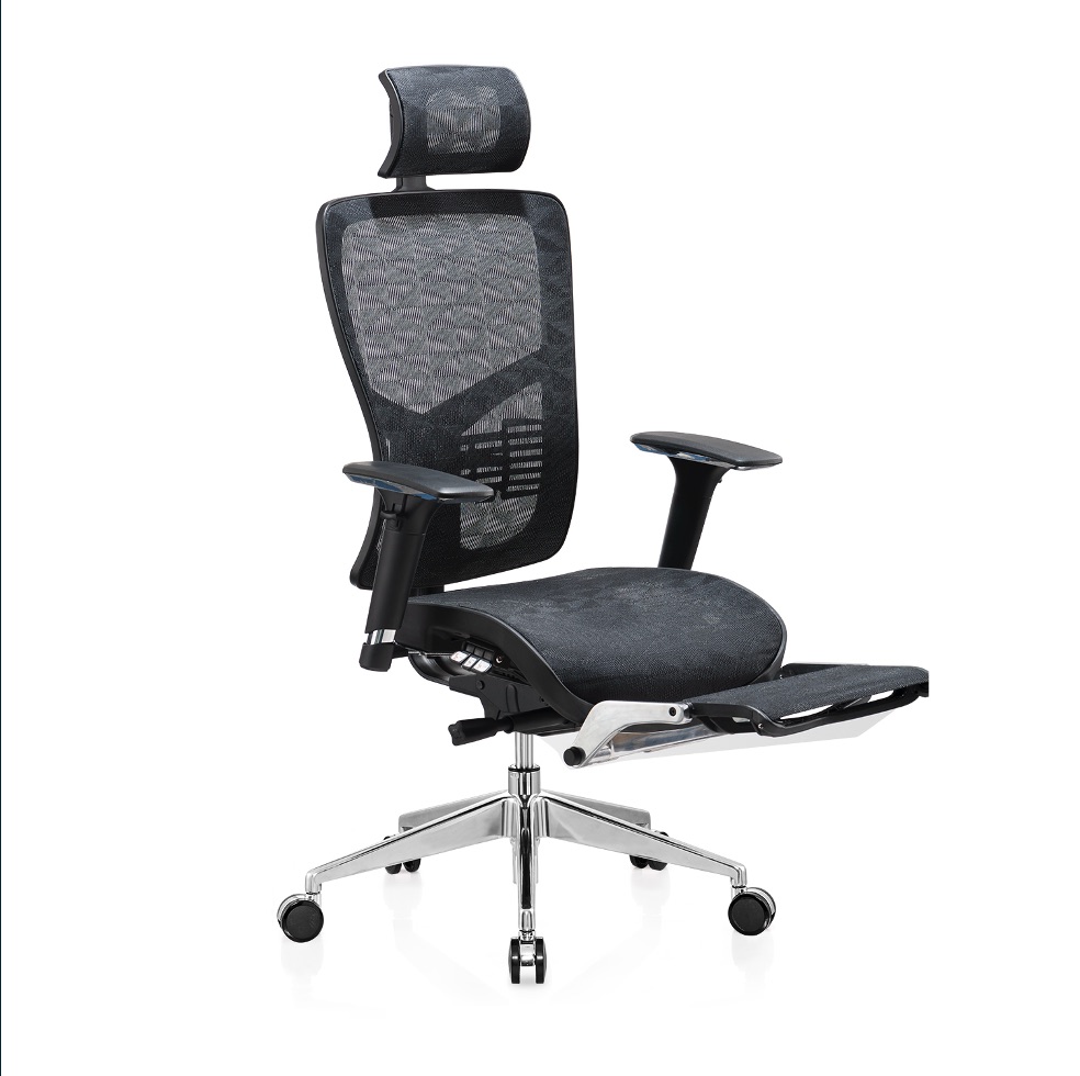 Silla de oficina con respaldo cómodo de ChinaEspecificación: • Fmalla completa • Con reposacabezas • con reposapiés • Marco negro • FlexibleSoporte lumbar • Reposabrazos 3D • 3alámbrico controlador mecanismo • Elevador de gas SHS:100 mm • Base de aluminio pulido:700 mm • Ccabello puede cargar más de 300KGS •65milímetro InsonorizarPU ruedas