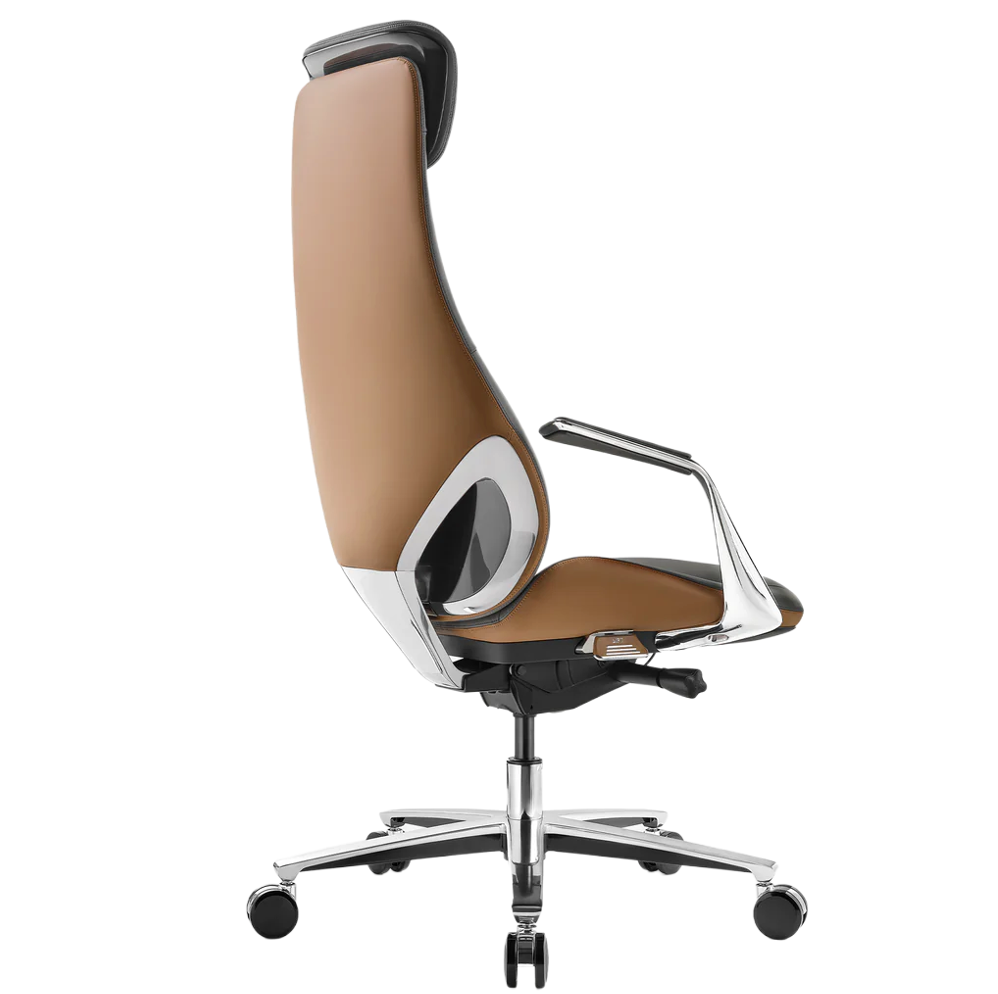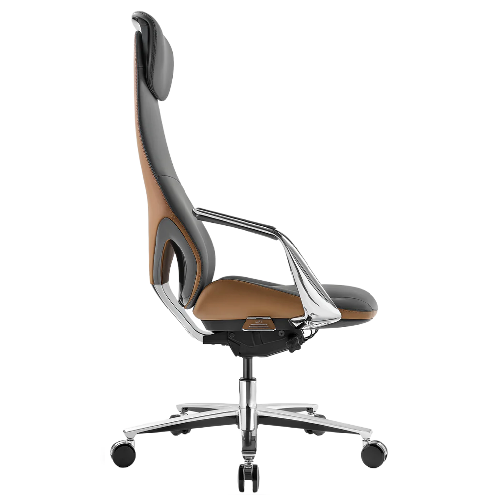 Silla de oficina con respaldo alto de cuero de grano completo para gerente