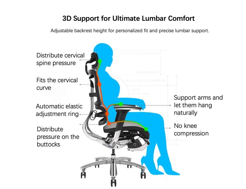 Respaldo ajustable y soporte lumbar: ajuste la altura y la profundidad del soporte lumbar para seguir la curva natural de su columna.